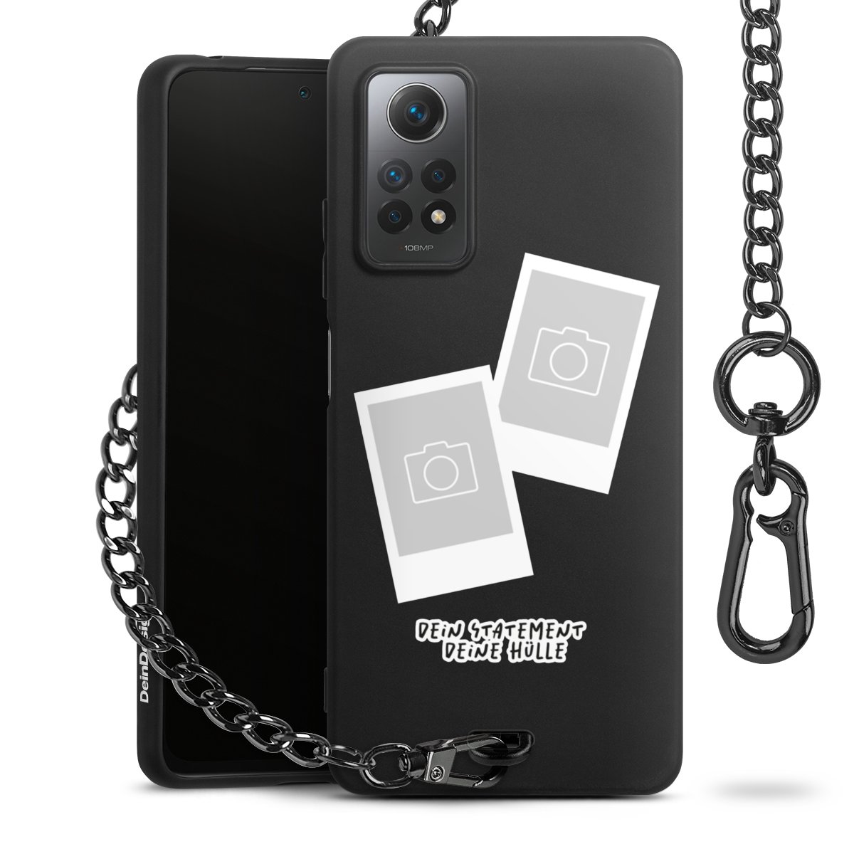 - Mattschwarze Handyhülle mit Metallkette