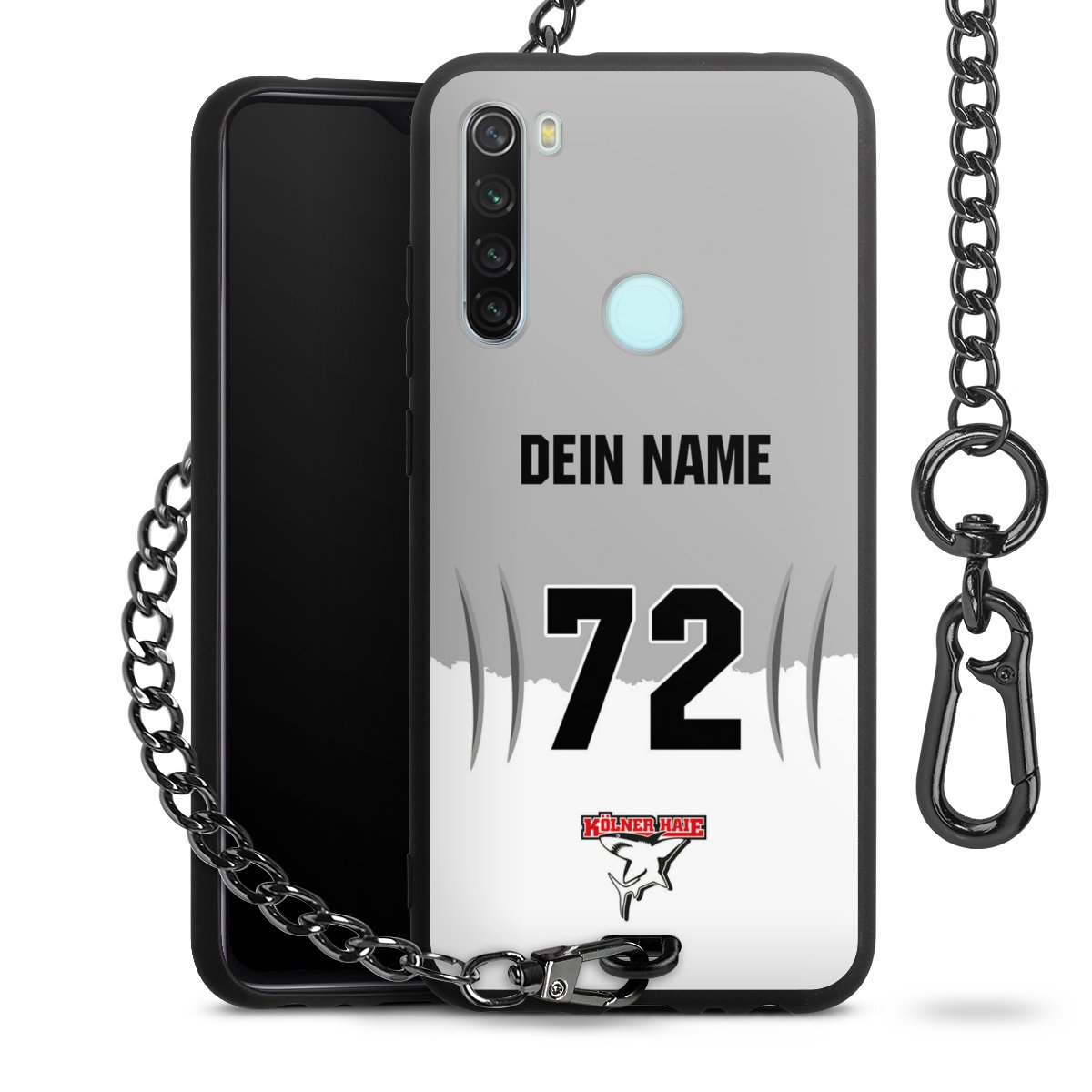 Die mattschwarze Silikon-Handyhülle besteht aus robustem TPU (thermoplastisches Polyurethan). Sie ist flexibel und schützt Dein Smartphone vor Stößen und Kratzern. Die Kette sowie der Karabinerhaken sind aus Metall in Gunmetal-Optik gefertigt. Für dieses Produkt kommen ausschließlich TÜV-geprüfte Materialien zum Einsatz.