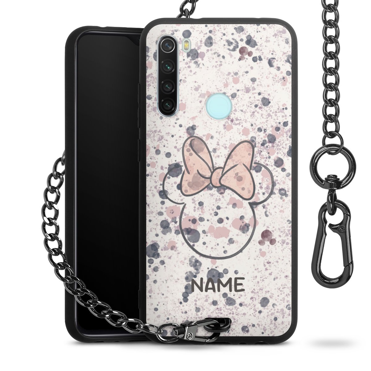 - Mattschwarze Handyhülle mit Metallkette