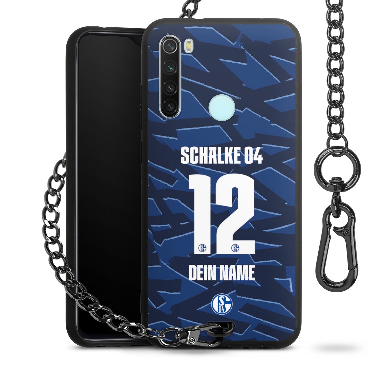 - Mattschwarze Handyhülle mit Metallkette