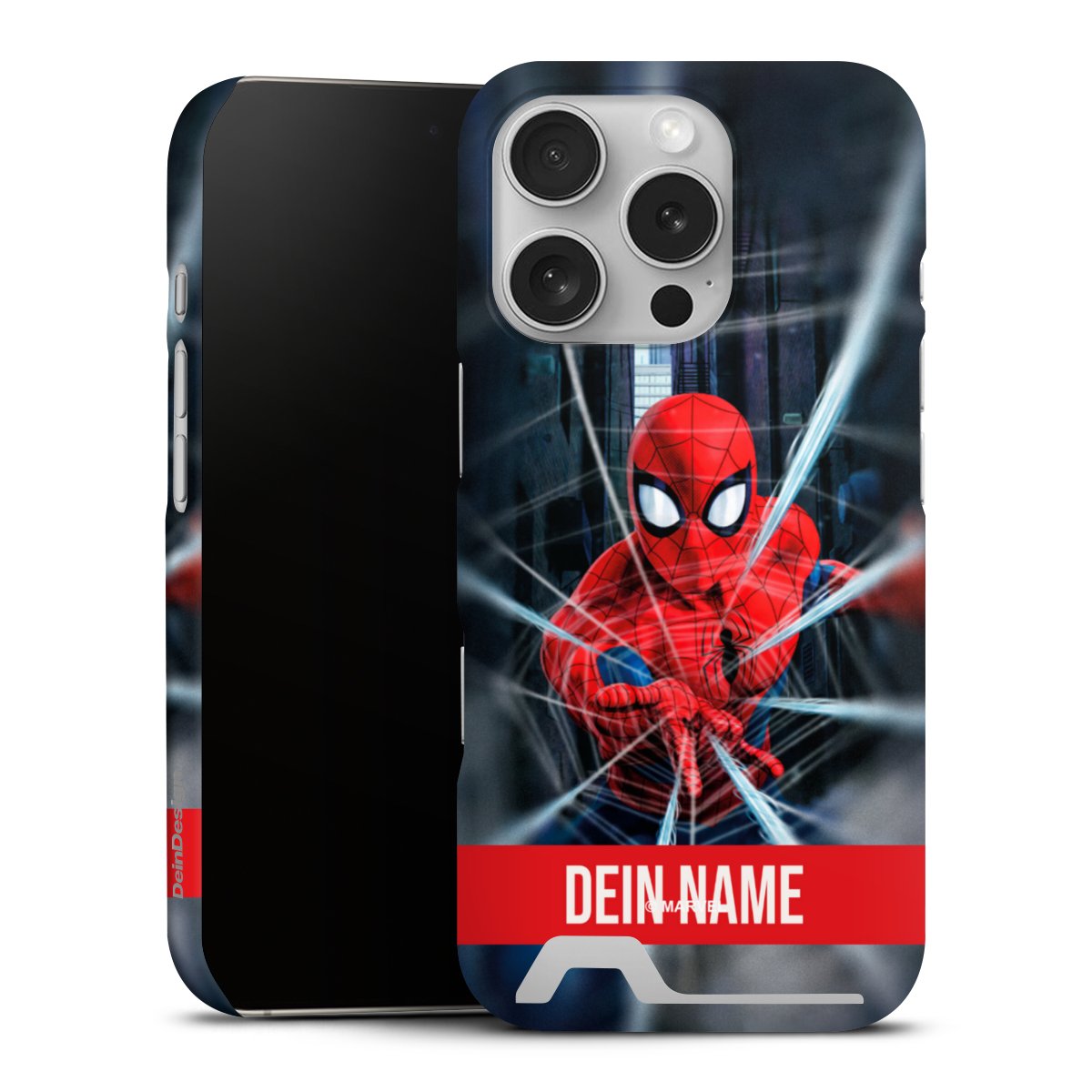 false Spiderman Webs in Action Personalisierbar für Premium Card Case für Apple iPhone 16 Pro von DeinDesign™