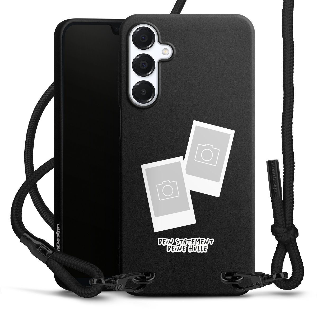 Bei dieser Handyhülle nutzen wir das solide Direktdruck-Verfahren, weshalb der Druckbereich ausschließlich die Rückseite umfasst und der Rand hingegen unbedruckt bleibt. Das Case zum Umhängen kann sowohl unbedruckt, als auch vollflächig oder partiell bedruckt bestellt werden. Wähle für Dein Design entweder eines unserer exklusiven Shop-Motive, oder werde kreativ und gestalte Dein Wunschdesign zum Beispiel mit Fotos und Overlays selbst. Designe Dir Dein persönliches Trend-Accessoire und setze ein individuelles Statement auf den Straßen.