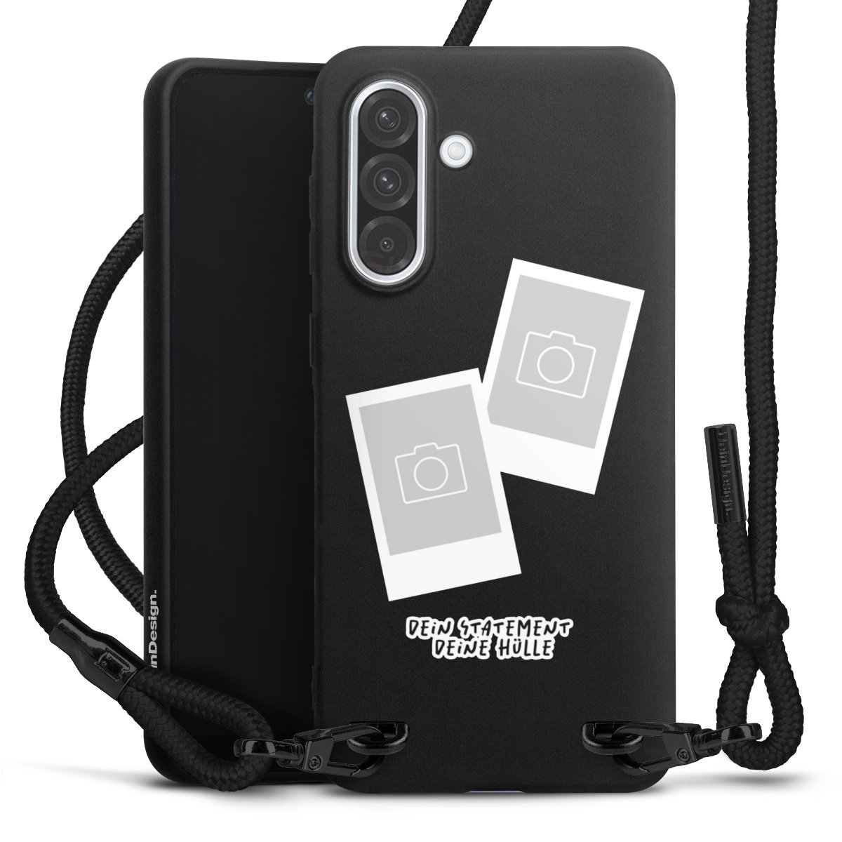 Bei dieser Handyhülle nutzen wir das solide Direktdruck-Verfahren, weshalb der Druckbereich ausschließlich die Rückseite umfasst und der Rand hingegen unbedruckt bleibt. Das Case zum Umhängen kann sowohl unbedruckt, als auch vollflächig oder partiell bedruckt bestellt werden. Wähle für Dein Design entweder eines unserer exklusiven Shop-Motive, oder werde kreativ und gestalte Dein Wunschdesign zum Beispiel mit Fotos und Overlays selbst. Designe Dir Dein persönliches Trend-Accessoire und setze ein individuelles Statement auf den Straßen.