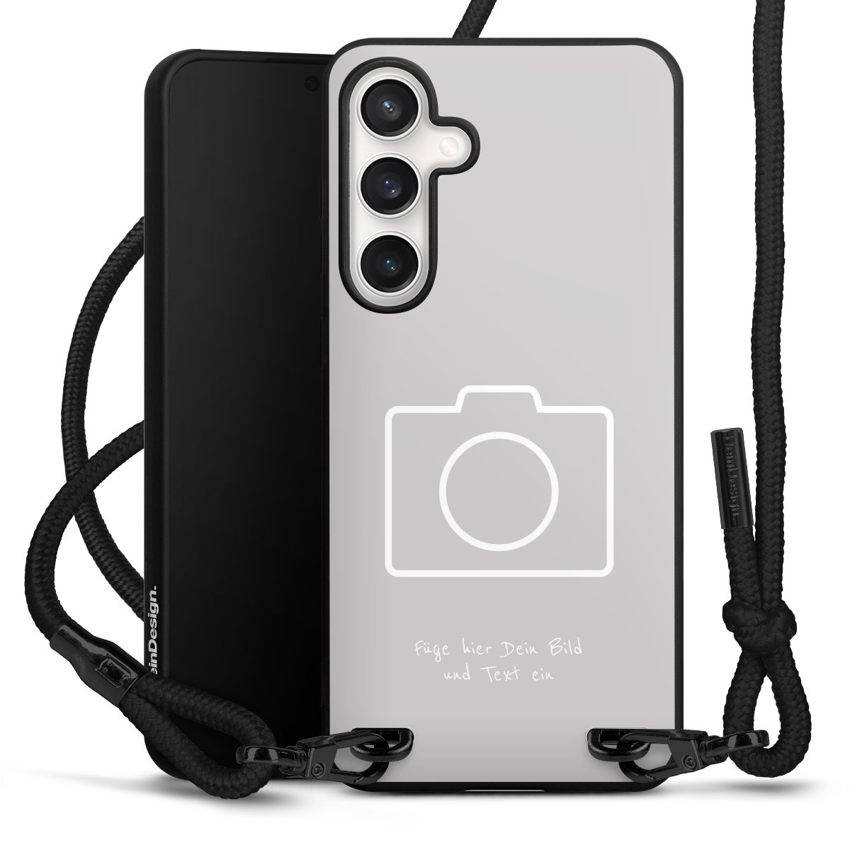 Bei dieser Handyhülle nutzen wir das solide Direktdruck-Verfahren, weshalb der Druckbereich ausschließlich die Rückseite umfasst und der Rand hingegen unbedruckt bleibt. Das Case zum Umhängen kann sowohl unbedruckt, als auch vollflächig oder partiell bedruckt bestellt werden. Wähle für Dein Design entweder eines unserer exklusiven Shop-Motive, oder werde kreativ und gestalte Dein Wunschdesign zum Beispiel mit Fotos und Overlays selbst. Designe Dir Dein persönliches Trend-Accessoire und setze ein individuelles Statement auf den Straßen.
