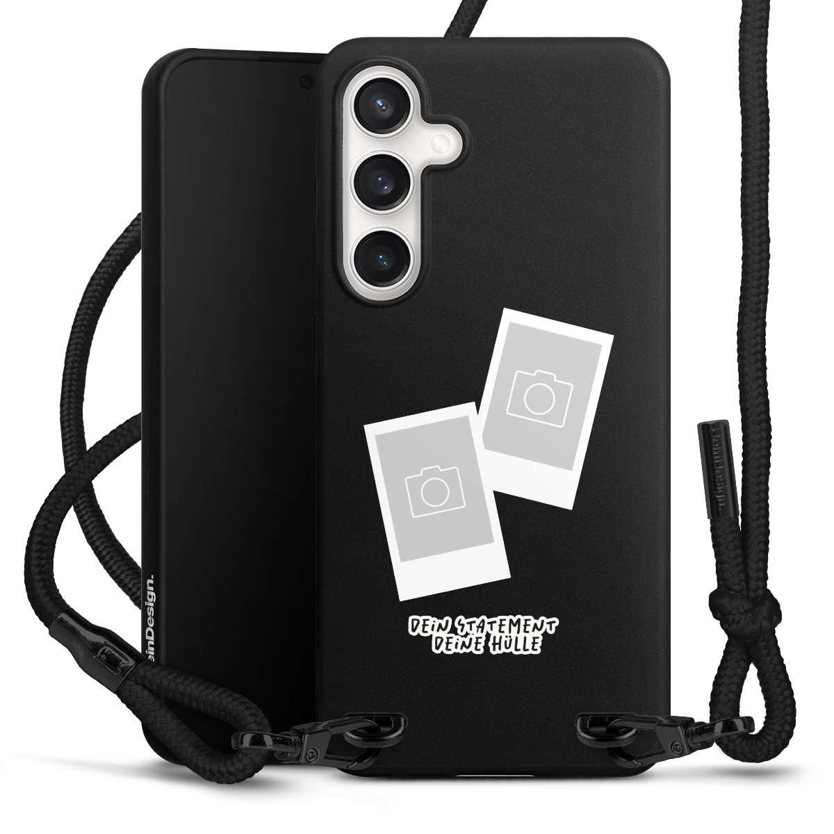 Bei dieser Handyhülle nutzen wir das solide Direktdruck-Verfahren, weshalb der Druckbereich ausschließlich die Rückseite umfasst und der Rand hingegen unbedruckt bleibt. Das Case zum Umhängen kann sowohl unbedruckt, als auch vollflächig oder partiell bedruckt bestellt werden. Wähle für Dein Design entweder eines unserer exklusiven Shop-Motive, oder werde kreativ und gestalte Dein Wunschdesign zum Beispiel mit Fotos und Overlays selbst. Designe Dir Dein persönliches Trend-Accessoire und setze ein individuelles Statement auf den Straßen.