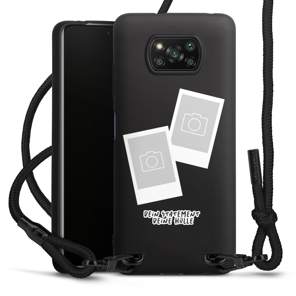 Bei dieser Handyhülle nutzen wir das solide Direktdruck-Verfahren, weshalb der Druckbereich ausschließlich die Rückseite umfasst und der Rand hingegen unbedruckt bleibt. Das Case zum Umhängen kann sowohl unbedruckt, als auch vollflächig oder partiell bedruckt bestellt werden. Wähle für Dein Design entweder eines unserer exklusiven Shop-Motive, oder werde kreativ und gestalte Dein Wunschdesign zum Beispiel mit Fotos und Overlays selbst. Designe Dir Dein persönliches Trend-Accessoire und setze ein individuelles Statement auf den Straßen.