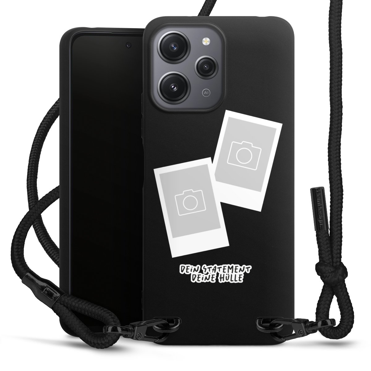 Bei dieser Handyhülle nutzen wir das solide Direktdruck-Verfahren, weshalb der Druckbereich ausschließlich die Rückseite umfasst und der Rand hingegen unbedruckt bleibt. Das Case zum Umhängen kann sowohl unbedruckt, als auch vollflächig oder partiell bedruckt bestellt werden. Wähle für Dein Design entweder eines unserer exklusiven Shop-Motive, oder werde kreativ und gestalte Dein Wunschdesign zum Beispiel mit Fotos und Overlays selbst. Designe Dir Dein persönliches Trend-Accessoire und setze ein individuelles Statement auf den Straßen.