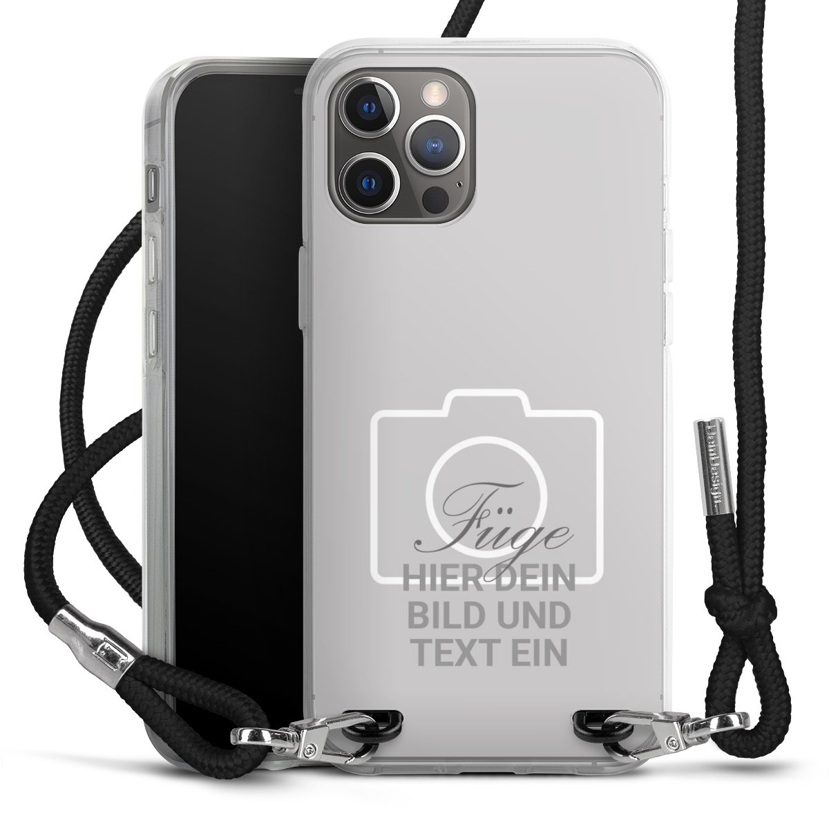 Habe Dein Handy, dank der flexiblen Silikon Handyhülle zum Umhängen mit der Handykette aus Stoff, immer griffbereit.