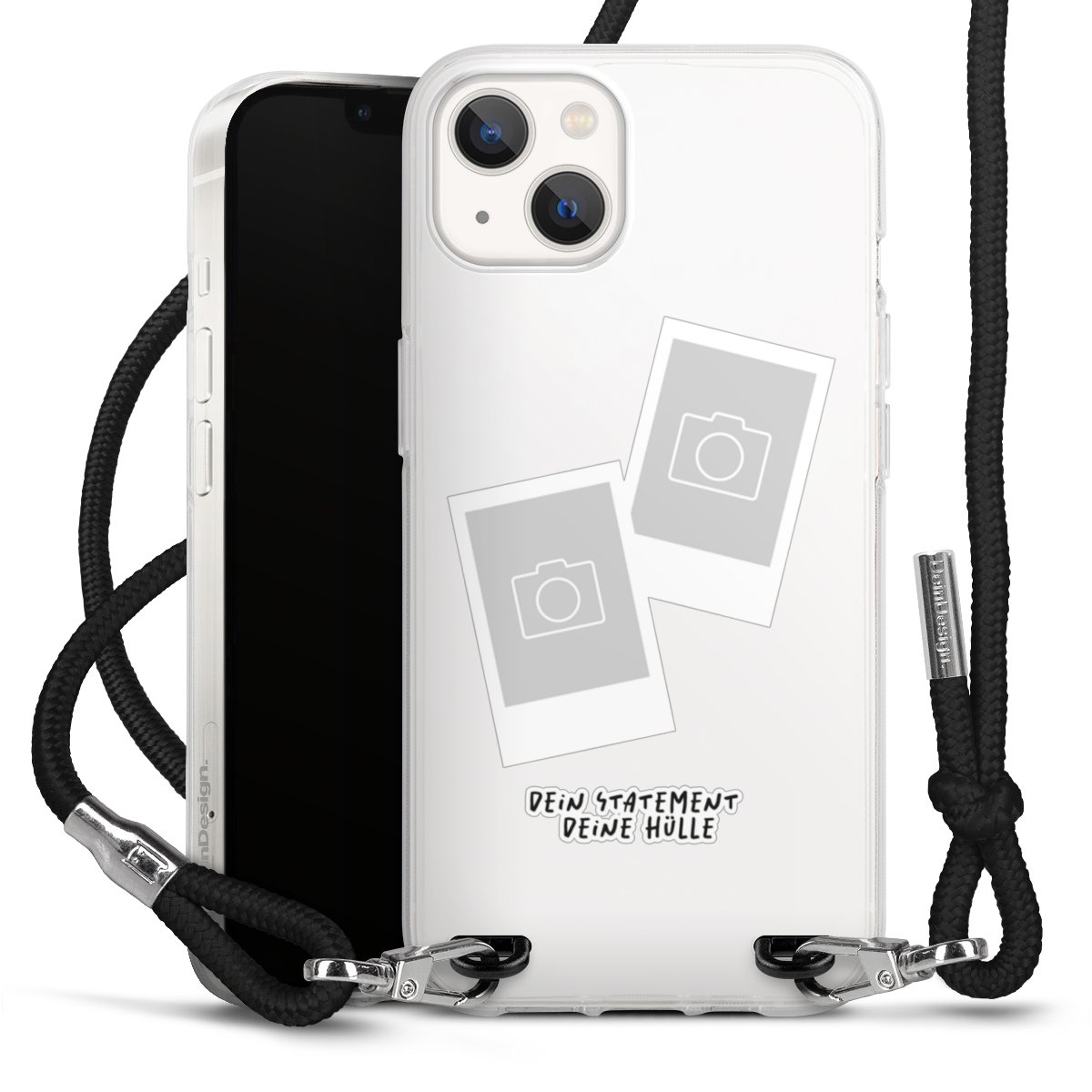 Bei dieser Handyhülle nutzen wir das solide Direktdruck-Verfahren, weshalb der Druckbereich ausschließlich die Rückseite umfasst und der Rand hingegen unbedruckt bleibt. Das Case zum Umhängen kann sowohl unbedruckt, als auch vollflächig oder partiell bedruckt bestellt werden. Wähle für Dein Design entweder eines unserer exklusiven Shop-Motive, oder werde kreativ und gestalte Dein Wunschdesign zum Beispiel mit Fotos und Overlays selbst. Designe Dir Dein persönliches Trend-Accessoire und setze ein individuelles Statement auf den Straßen!