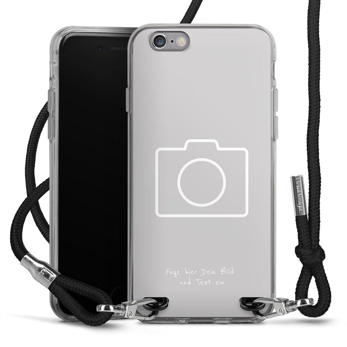 Habe Dein Handy, dank der flexiblen Silikon Handyhülle zum Umhängen mit der Handykette aus Stoff, immer griffbereit.