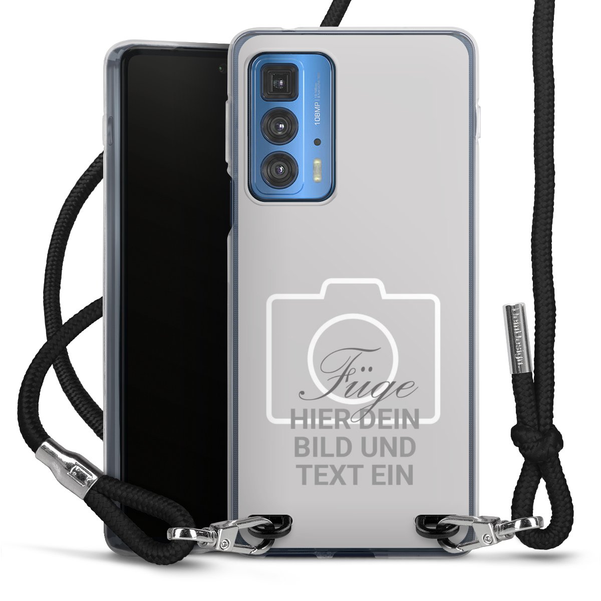 Bei dieser Handyhülle nutzen wir das solide Direktdruck-Verfahren, weshalb der Druckbereich ausschließlich die Rückseite umfasst und der Rand hingegen unbedruckt bleibt. Das Case zum Umhängen kann sowohl unbedruckt, als auch vollflächig oder partiell bedruckt bestellt werden. Wähle für Dein Design entweder eines unserer exklusiven Shop-Motive, oder werde kreativ und gestalte Dein Wunschdesign zum Beispiel mit Fotos und Overlays selbst. Designe Dir Dein persönliches Trend-Accessoire und setze ein individuelles Statement auf den Straßen!
