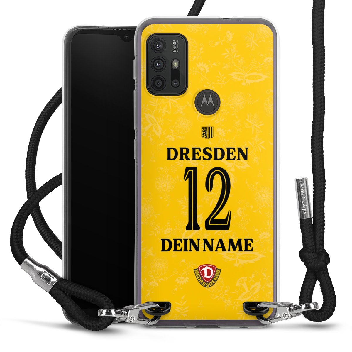 Bei dieser Handyhülle nutzen wir das solide Direktdruck-Verfahren, weshalb der Druckbereich ausschließlich die Rückseite umfasst und der Rand hingegen unbedruckt bleibt. Das Case zum Umhängen kann sowohl unbedruckt, als auch vollflächig oder partiell bedruckt bestellt werden. Wähle für Dein Design entweder eines unserer exklusiven Shop-Motive, oder werde kreativ und gestalte Dein Wunschdesign zum Beispiel mit Fotos und Overlays selbst. Designe Dir Dein persönliches Trend-Accessoire und setze ein individuelles Statement auf den Straßen!