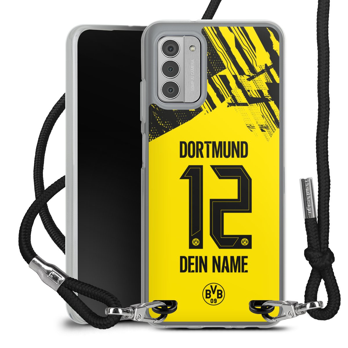 Bei dieser Handyhülle nutzen wir das solide Direktdruck-Verfahren, weshalb der Druckbereich ausschließlich die Rückseite umfasst und der Rand hingegen unbedruckt bleibt. Das Case zum Umhängen kann sowohl unbedruckt, als auch vollflächig oder partiell bedruckt bestellt werden. Wähle für Dein Design entweder eines unserer exklusiven Shop-Motive, oder werde kreativ und gestalte Dein Wunschdesign zum Beispiel mit Fotos und Overlays selbst. Designe Dir Dein persönliches Trend-Accessoire und setze ein individuelles Statement auf den Straßen!