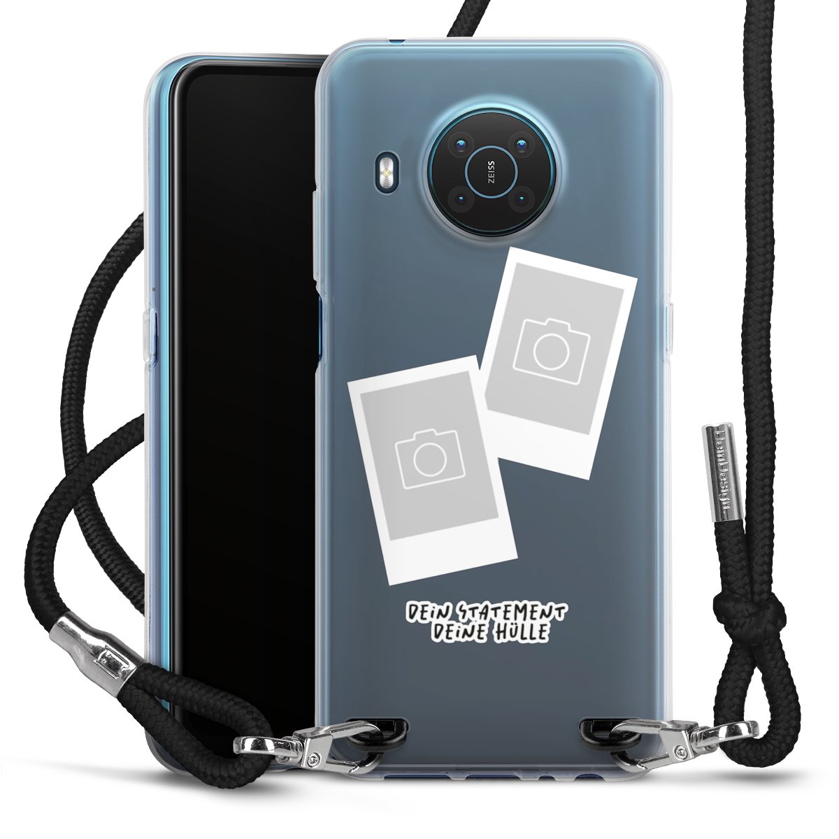 Habe Dein Handy, dank der flexiblen Silikon Handyhülle zum Umhängen mit der Handykette aus Stoff, immer griffbereit.