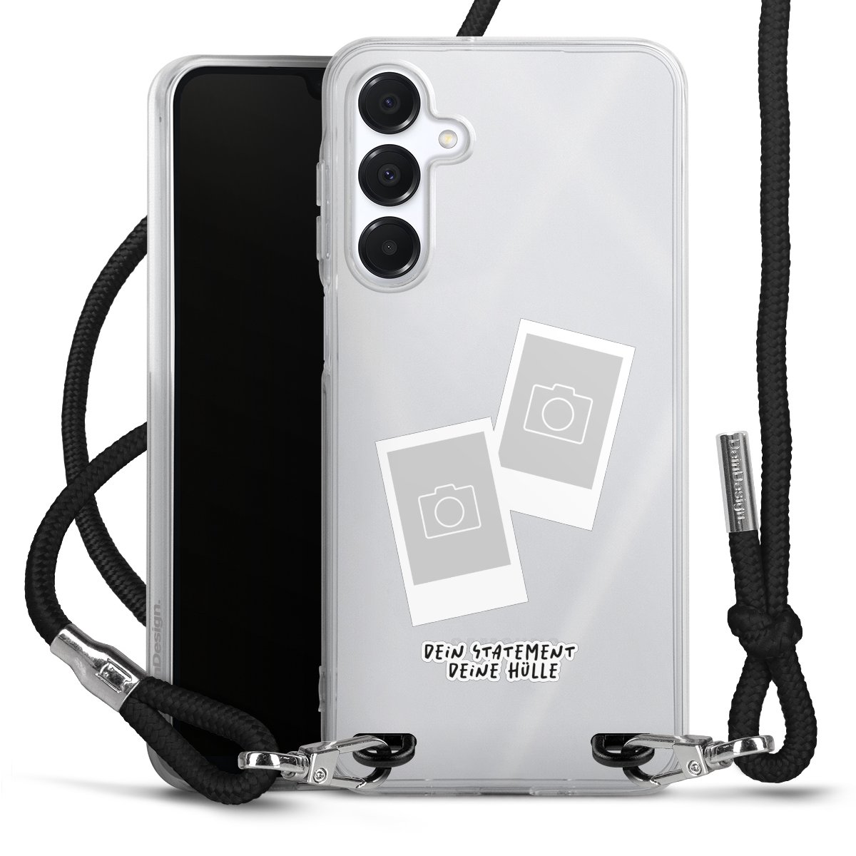 Bei dieser Handyhülle nutzen wir das solide Direktdruck-Verfahren, weshalb der Druckbereich ausschließlich die Rückseite umfasst und der Rand hingegen unbedruckt bleibt. Das Case zum Umhängen kann sowohl unbedruckt, als auch vollflächig oder partiell bedruckt bestellt werden. Wähle für Dein Design entweder eines unserer exklusiven Shop-Motive, oder werde kreativ und gestalte Dein Wunschdesign zum Beispiel mit Fotos und Overlays selbst. Designe Dir Dein persönliches Trend-Accessoire und setze ein individuelles Statement auf den Straßen!