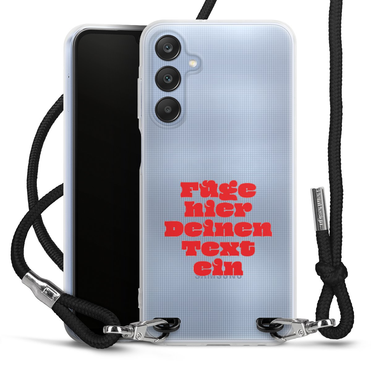 Bei dieser Handyhülle nutzen wir das solide Direktdruck-Verfahren, weshalb der Druckbereich ausschließlich die Rückseite umfasst und der Rand hingegen unbedruckt bleibt. Das Case zum Umhängen kann sowohl unbedruckt, als auch vollflächig oder partiell bedruckt bestellt werden. Wähle für Dein Design entweder eines unserer exklusiven Shop-Motive, oder werde kreativ und gestalte Dein Wunschdesign zum Beispiel mit Fotos und Overlays selbst. Designe Dir Dein persönliches Trend-Accessoire und setze ein individuelles Statement auf den Straßen!