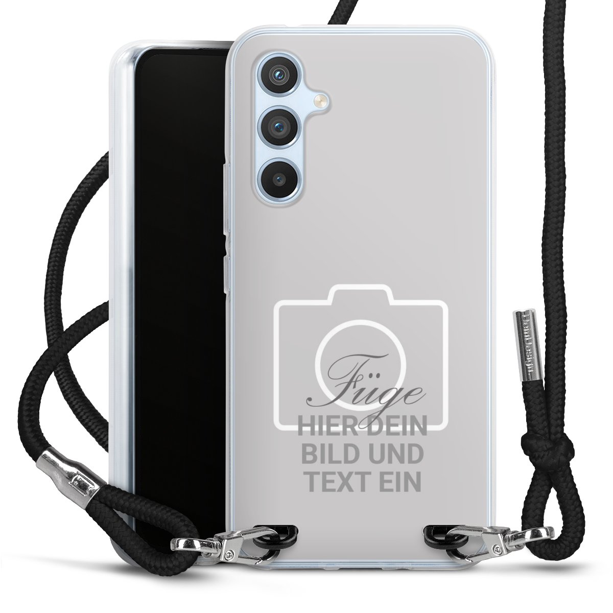 Habe Dein Handy, dank der flexiblen Silikon Handyhülle zum Umhängen mit der Handykette aus Stoff, immer griffbereit.