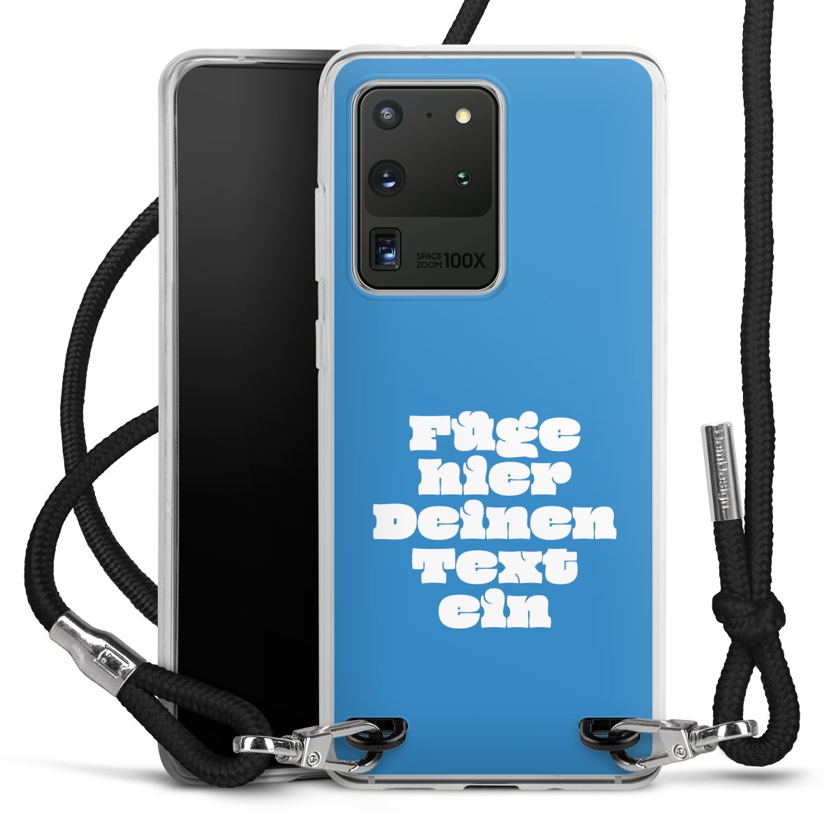 Habe Dein Handy, dank der flexiblen Silikon Handyhülle zum Umhängen mit der Handykette aus Stoff, immer griffbereit.