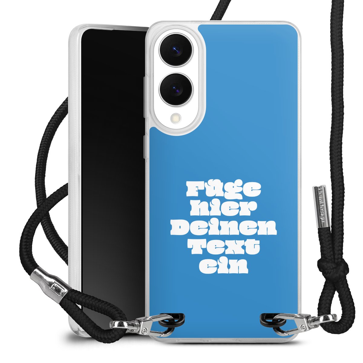 Habe Dein Handy, dank der flexiblen Silikon Handyhülle zum Umhängen mit der Handykette aus Stoff, immer griffbereit.