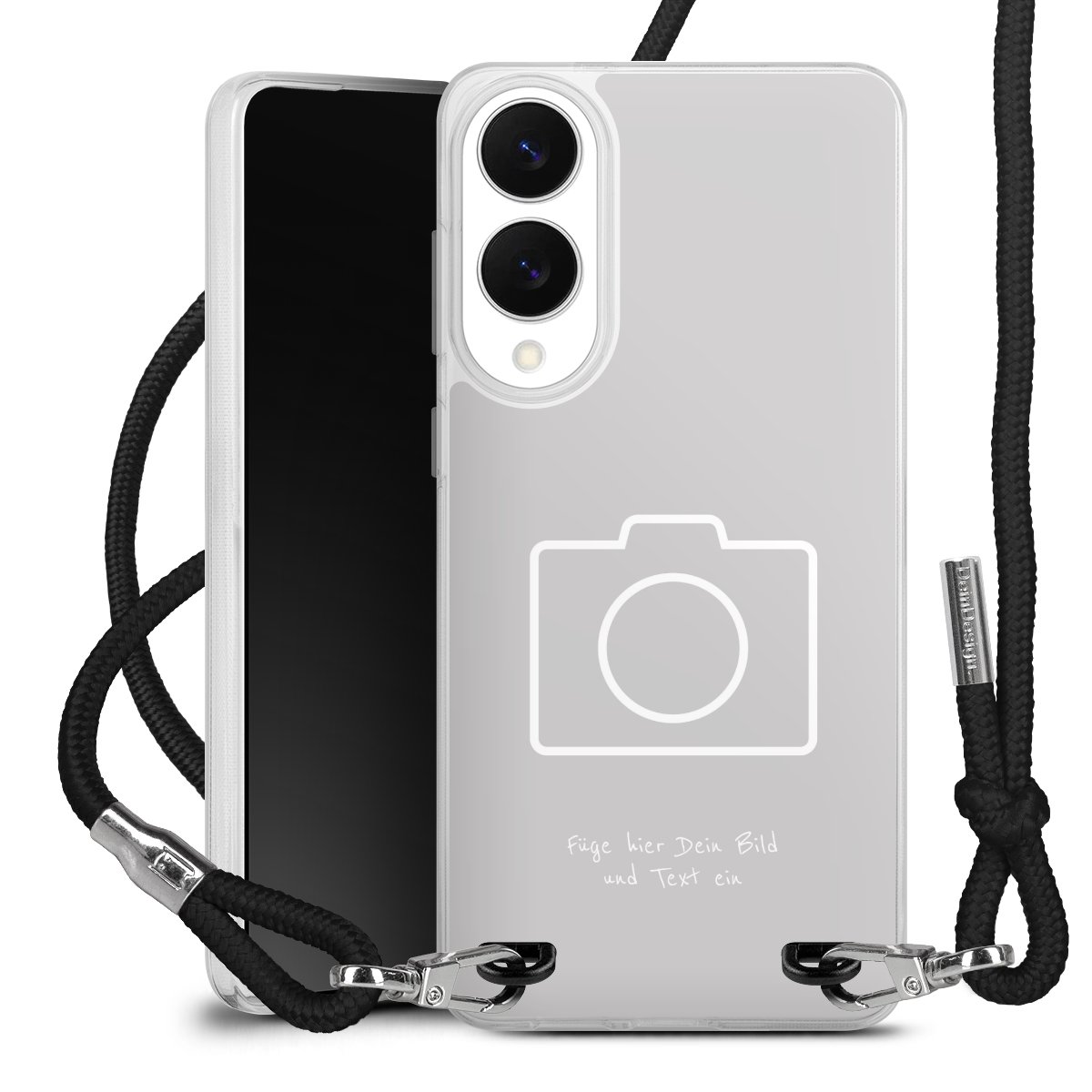 Habe Dein Handy, dank der flexiblen Silikon Handyhülle zum Umhängen mit der Handykette aus Stoff, immer griffbereit.