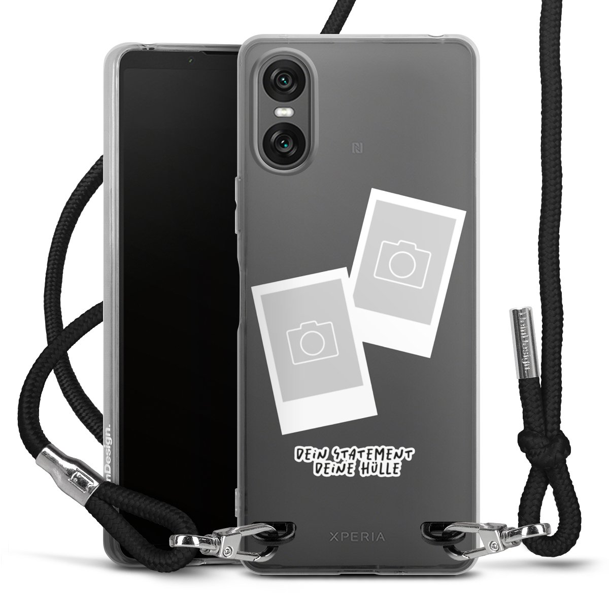 Bei dieser Handyhülle nutzen wir das solide Direktdruck-Verfahren, weshalb der Druckbereich ausschließlich die Rückseite umfasst und der Rand hingegen unbedruckt bleibt. Das Case zum Umhängen kann sowohl unbedruckt, als auch vollflächig oder partiell bedruckt bestellt werden. Wähle für Dein Design entweder eines unserer exklusiven Shop-Motive, oder werde kreativ und gestalte Dein Wunschdesign zum Beispiel mit Fotos und Overlays selbst. Designe Dir Dein persönliches Trend-Accessoire und setze ein individuelles Statement auf den Straßen!