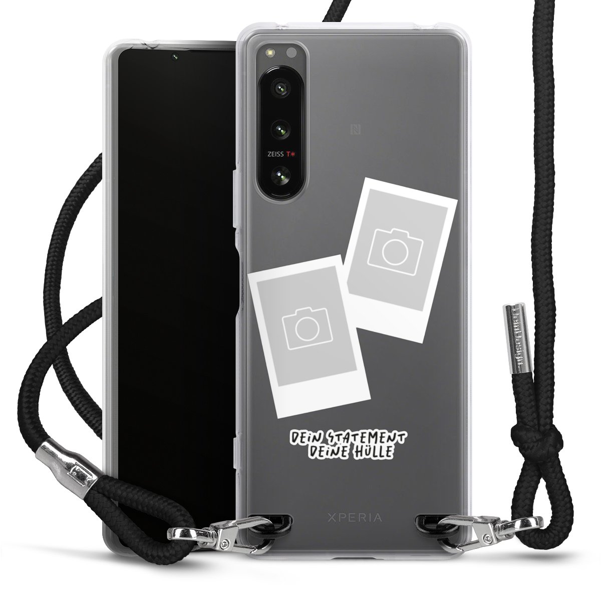 Bei dieser Handyhülle nutzen wir das solide Direktdruck-Verfahren, weshalb der Druckbereich ausschließlich die Rückseite umfasst und der Rand hingegen unbedruckt bleibt. Das Case zum Umhängen kann sowohl unbedruckt, als auch vollflächig oder partiell bedruckt bestellt werden. Wähle für Dein Design entweder eines unserer exklusiven Shop-Motive, oder werde kreativ und gestalte Dein Wunschdesign zum Beispiel mit Fotos und Overlays selbst. Designe Dir Dein persönliches Trend-Accessoire und setze ein individuelles Statement auf den Straßen!