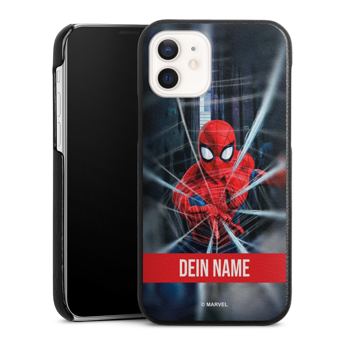 false Spiderman Webs in Action Personalisierbar für Leder Case für Apple iPhone 12 mini von DeinDesign™