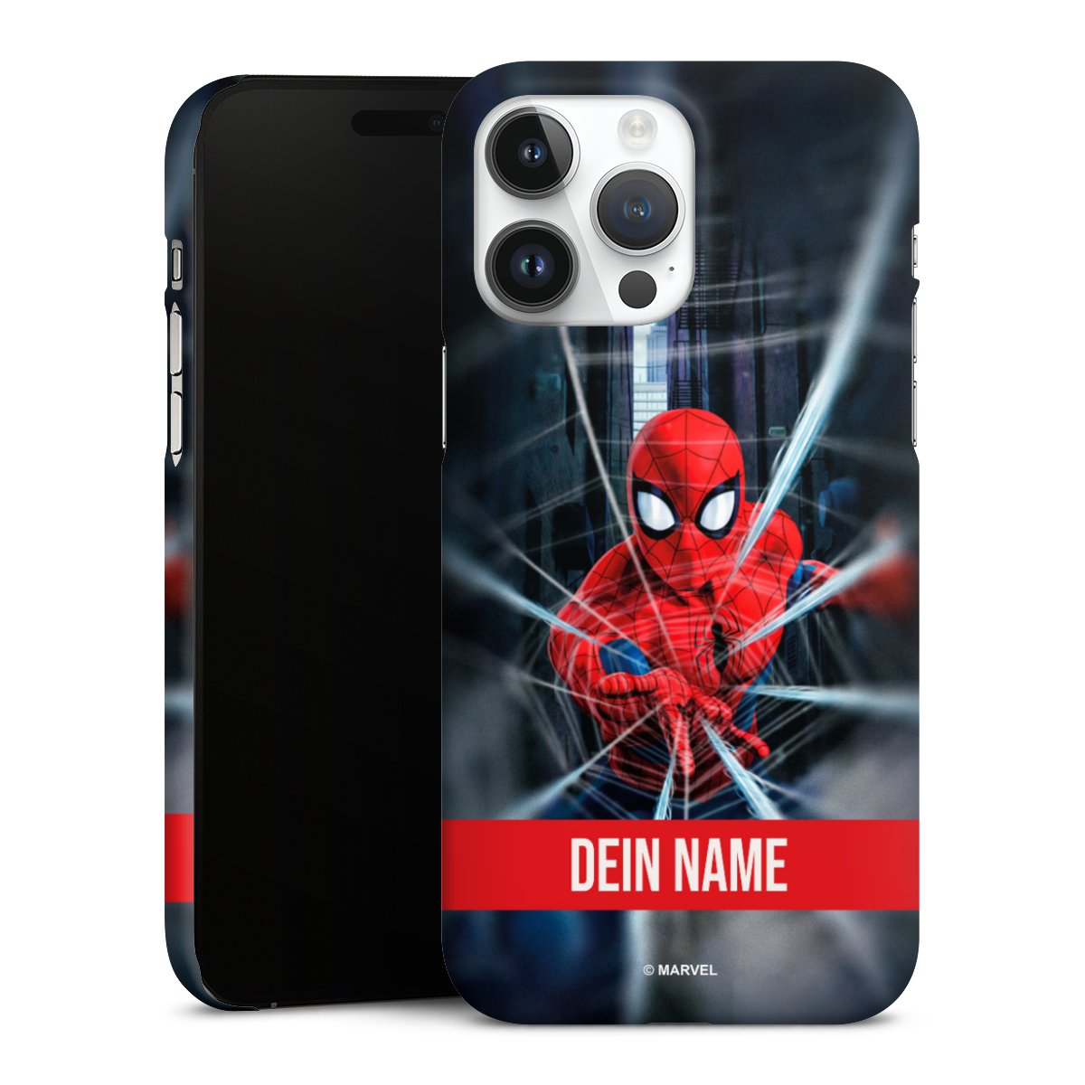 false Spiderman Webs in Action Personalisierbar für Premium Case für Apple iPhone 14 Pro Max von DeinDesign™