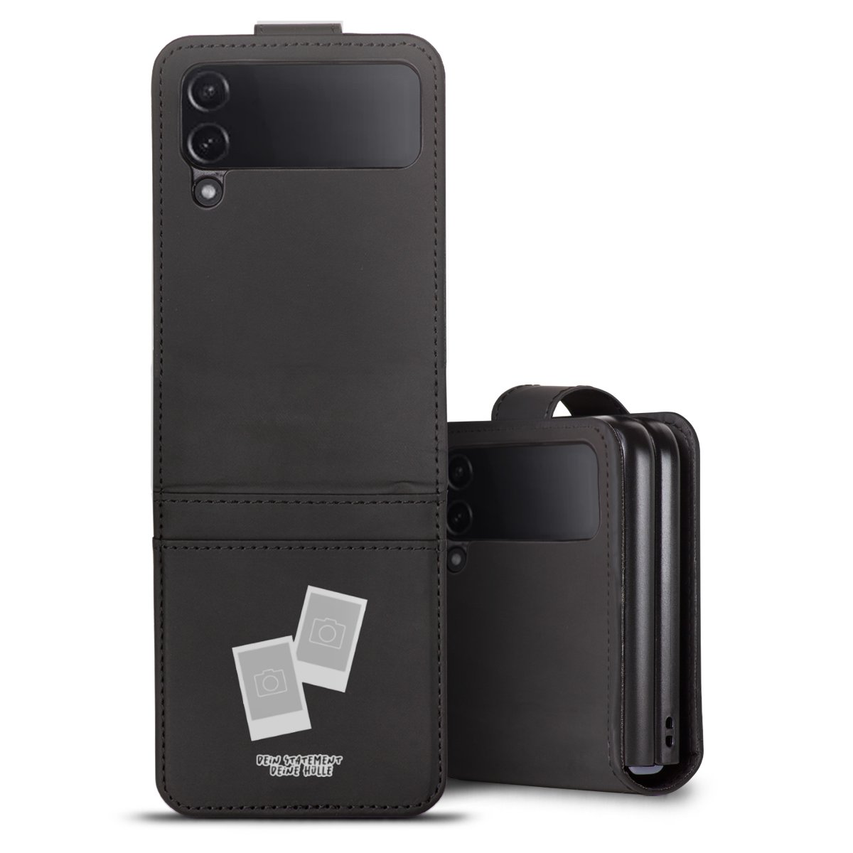 Bei dieser Handyhülle nutzen wir das solide Direktdruck-Verfahren. Der Druckbereich umfasst die Vorder- und Rückseite, die Innenseiten bleiben unbedruckt. Die Handyhülle kann sowohl unbedruckt, als auch vollflächig oder partiell bedruckt bestellt werden. Beachte hierbei, dass der Druck wie in der Ansicht dargestellt auf dem Rücken unterbrochen ist, damit Dein Druckbild durch das Klappen der Tasche nicht brüchig wird. Der Vorteil bei diesem Produkt: aufgrund der seitlich angebrachten Lasche wird kein Teil des Druckbildes verdeckt.