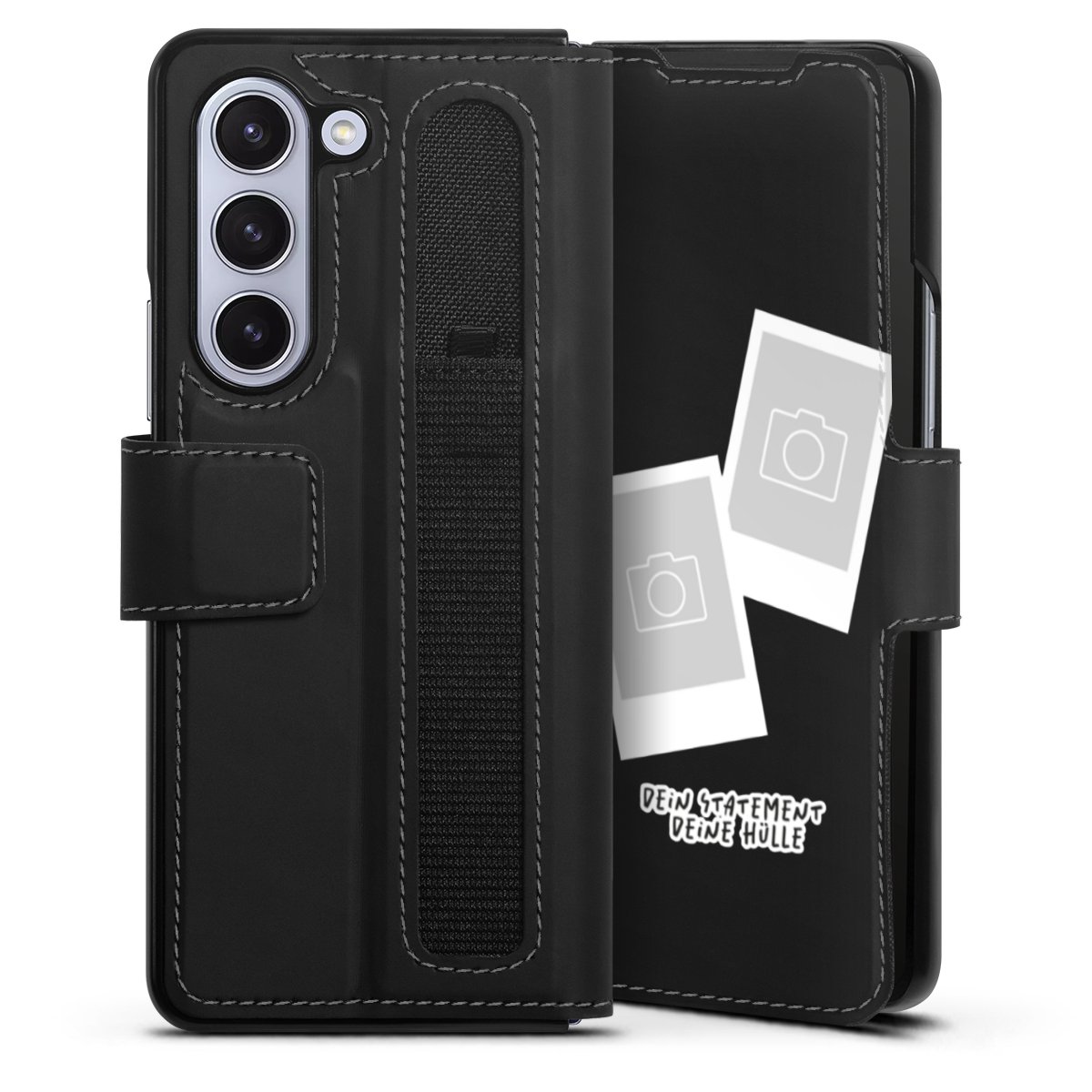 Bei dieser Handyhülle nutzen wir das solide Direktdruck-Verfahren. Der Druckbereich umfasst die Vorder- und Rückseite, die Innenseiten bleiben unbedruckt. Die Handyhülle kann sowohl unbedruckt, als auch vollflächig oder partiell bedruckt bestellt werden. Beachte hierbei, dass der Druck wie in der Ansicht dargestellt auf dem Rücken unterbrochen ist, damit Dein Druckbild durch das Klappen der Tasche nicht brüchig wird. Der Vorteil bei diesem Produkt: aufgrund der seitlich angebrachten Lasche wird kein Teil des Druckbildes verdeckt.