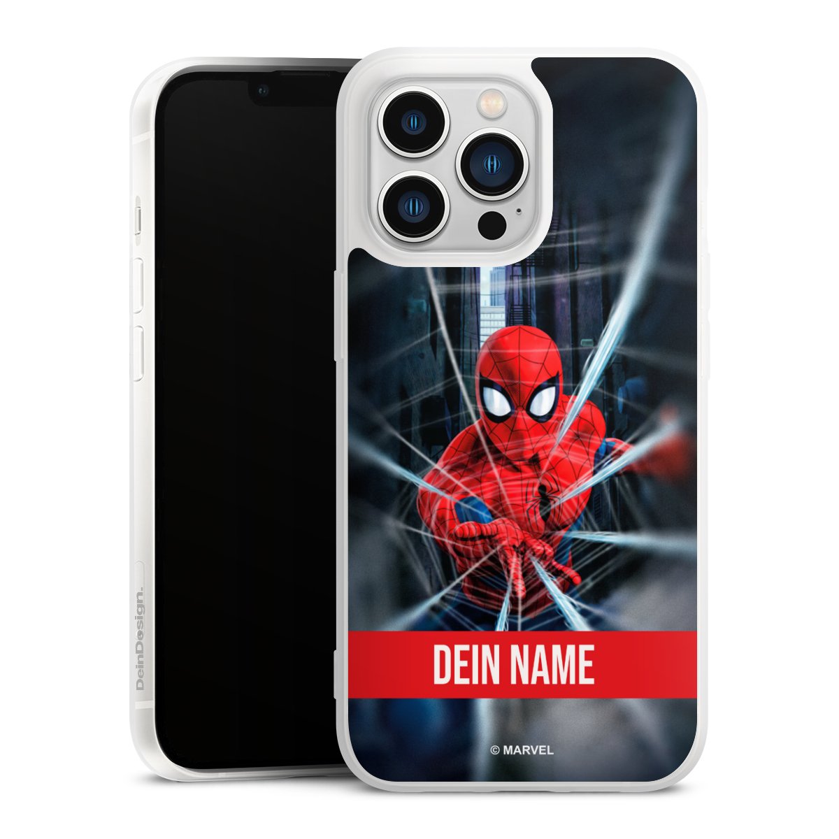 false Spiderman Webs in Action Personalisierbar für Silikon Premium Case für Apple iPhone 13 Pro von DeinDesign™