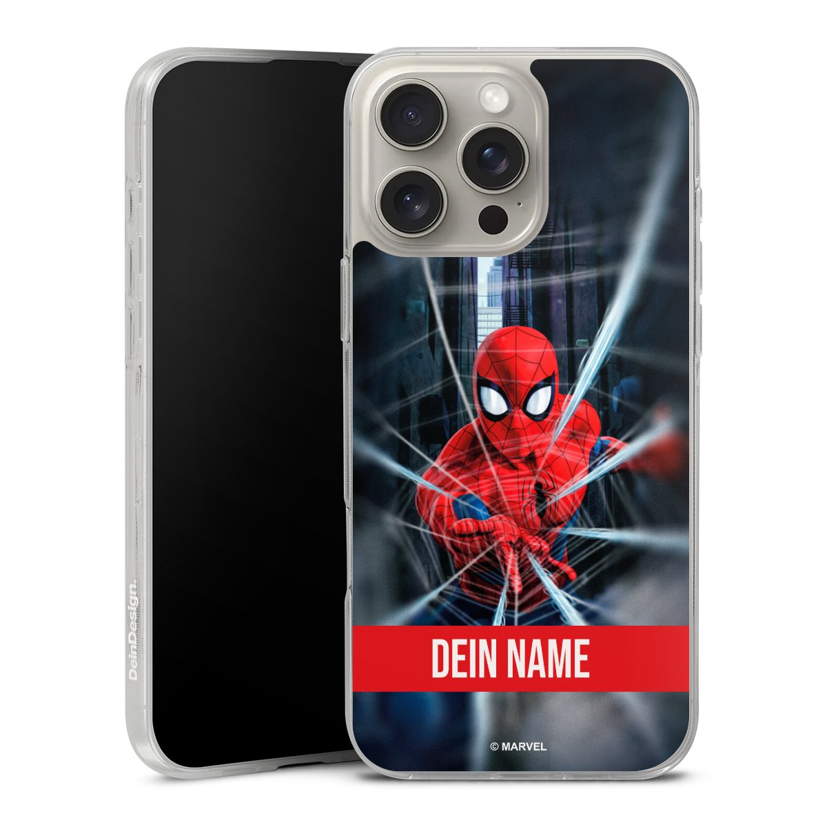 false Spiderman Webs in Action Personalisierbar für Silikon Case für Apple iPhone 16 Pro Max von DeinDesign™