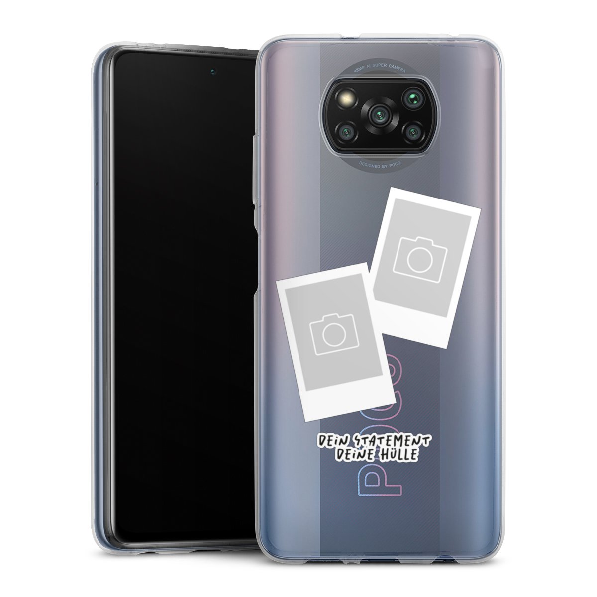 Bei dieser Handyhülle nutzen wir das solide Direktdruck-Verfahren. Der Druckbereich umfasst die Rückseite, der Rand bleibt unbedruckt. Die Handyhülle kann sowohl unbedruckt, als auch vollflächig oder partiell bedruckt bestellt werden. Wähle für Dein Design entweder eines unserer exklusiven Shop-Motive, oder werde kreativ und gestalte Dein Wunschdesign zum Beispiel mit Fotos und Overlays ganz einfach selbst.