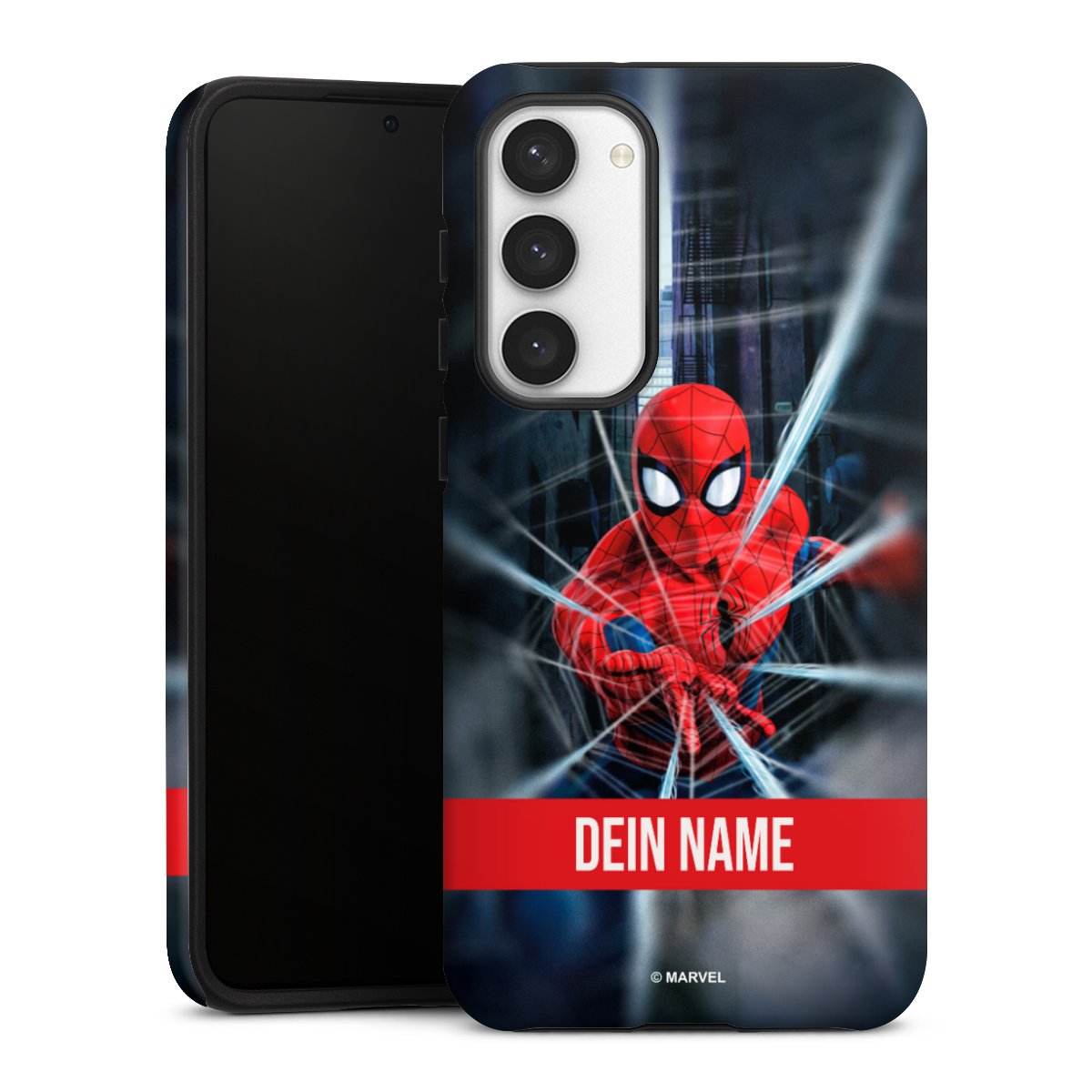 false Spiderman Webs in Action Personalisierbar für Tough Case für Samsung Galaxy S23+ von DeinDesign™