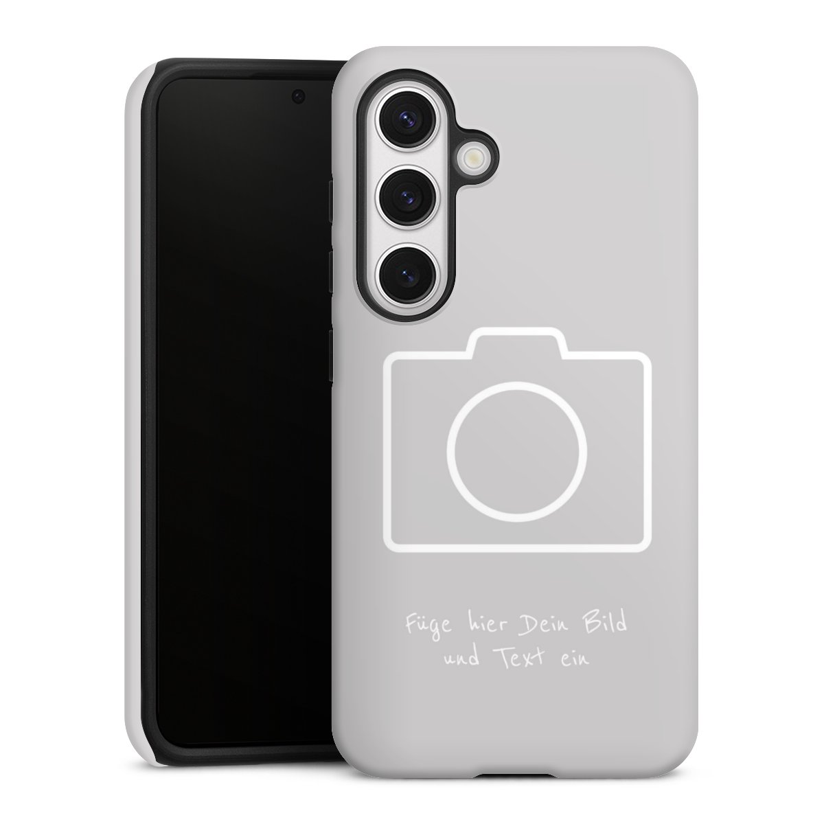 Bei dieser Handyhülle nutzen wird den besonders langlebigen Sublimationsdruck. Dieses raffinierte Druckverfahren sticht durch sein hochwertiges, gestochen scharfes Druckbild in brillanten Farben hervor. Der Druckbereich umfasst die ganze Hartschale inklusive der Ecken und Kanten, lediglich der Silikon-Einleger bleibt einfarbig schwarz. Wähle für Dein Design entweder eines unserer exklusiven Shop-Motive, oder werde kreativ und gestalte Dein Wunschdesign zum Beispiel mit Fotos und Overlays selbst.