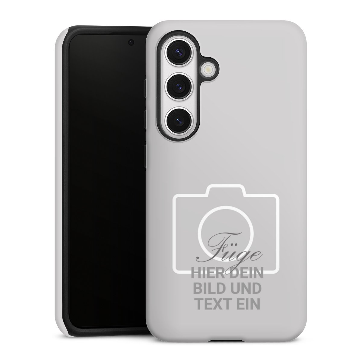 Bei dieser Handyhülle nutzen wird den besonders langlebigen Sublimationsdruck. Dieses raffinierte Druckverfahren sticht durch sein hochwertiges, gestochen scharfes Druckbild in brillanten Farben hervor. Der Druckbereich umfasst die ganze Hartschale inklusive der Ecken und Kanten, lediglich der Silikon-Einleger bleibt einfarbig schwarz. Wähle für Dein Design entweder eines unserer exklusiven Shop-Motive, oder werde kreativ und gestalte Dein Wunschdesign zum Beispiel mit Fotos und Overlays selbst.