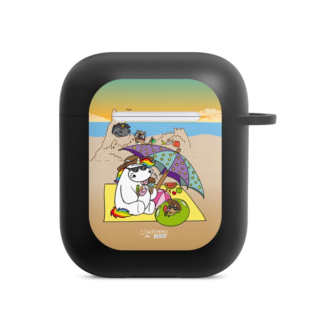 Das zweiteilige AirPods Case ermöglicht es Dir, Deine AirPods oder AirPods Pro sicher aufzubewahren und trotzdem immer griffbereit zu haben. Mit dem praktischen Karabinerhaken befestigst Du sie zum Beispiel ganz easy an Deiner Handykette oder einem Schlüsselbund. Wireless Charging bleibt natürlich weiterhin möglich. Die Hülle besteht aus hochwertigem TPU (thermoplastisches Polyurethan), einem langlebigen sowie bruchsicheren Material. Die Hülle ist in den Farben schwarz und weiß erhältlich. Und das Beste: Du kannst Dein AirPods Hülle selbst gestalten.