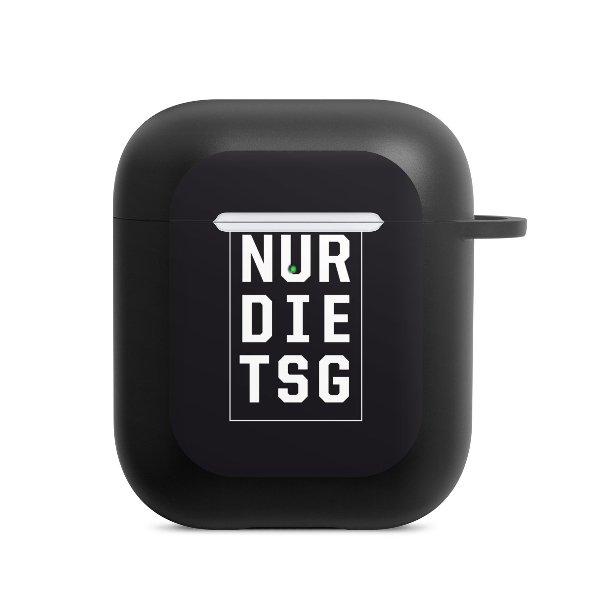 Das zweiteilige AirPods Case ermöglicht es Dir, Deine AirPods oder AirPods Pro sicher aufzubewahren und trotzdem immer griffbereit zu haben. Mit dem praktischen Karabinerhaken befestigst Du sie zum Beispiel ganz easy an Deiner Handykette oder einem Schlüsselbund. Wireless Charging bleibt natürlich weiterhin möglich. Die Hülle besteht aus hochwertigem TPU (thermoplastisches Polyurethan), einem langlebigen sowie bruchsicheren Material. Die Hülle ist in den Farben schwarz und weiß erhältlich. Und das Beste: Du kannst Dein AirPods Hülle selbst gestalten.