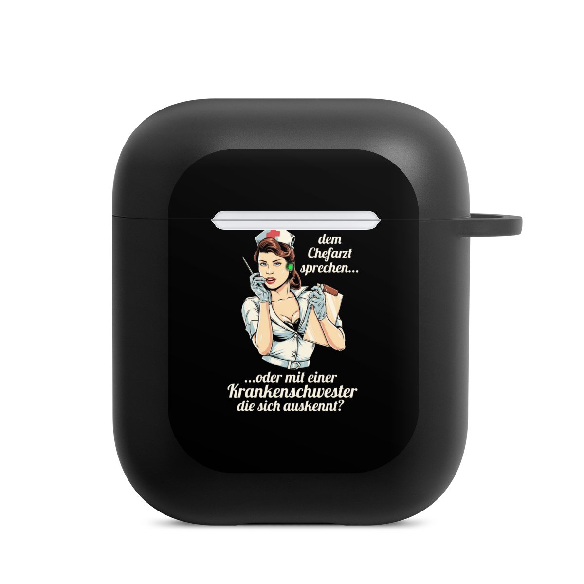 Das zweiteilige AirPods Case ermöglicht es Dir, Deine AirPods oder AirPods Pro sicher aufzubewahren und trotzdem immer griffbereit zu haben. Mit dem praktischen Karabinerhaken befestigst Du sie zum Beispiel ganz easy an Deiner Handykette oder einem Schlüsselbund. Wireless Charging bleibt natürlich weiterhin möglich. Die Hülle besteht aus hochwertigem TPU (thermoplastisches Polyurethan), einem langlebigen sowie bruchsicheren Material. Die Hülle ist in den Farben schwarz und weiß erhältlich. Und das Beste: Du kannst Dein AirPods Hülle selbst gestalten.