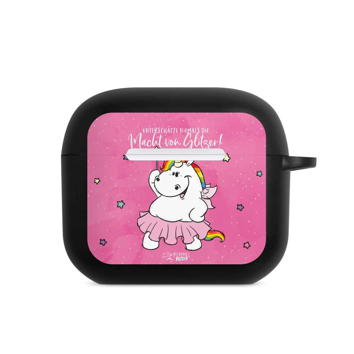 Das zweiteilige AirPods Case ermöglicht es Dir, Deine AirPods oder AirPods Pro sicher aufzubewahren und trotzdem immer griffbereit zu haben. Mit dem praktischen Karabinerhaken befestigst Du sie zum Beispiel ganz easy an Deiner Handykette oder einem Schlüsselbund. Wireless Charging bleibt natürlich weiterhin möglich. Die Hülle besteht aus hochwertigem TPU (thermoplastisches Polyurethan), einem langlebigen sowie bruchsicheren Material. Die Hülle ist in den Farben schwarz und weiß erhältlich. Und das Beste: Du kannst Dein AirPods Hülle selbst gestalten.