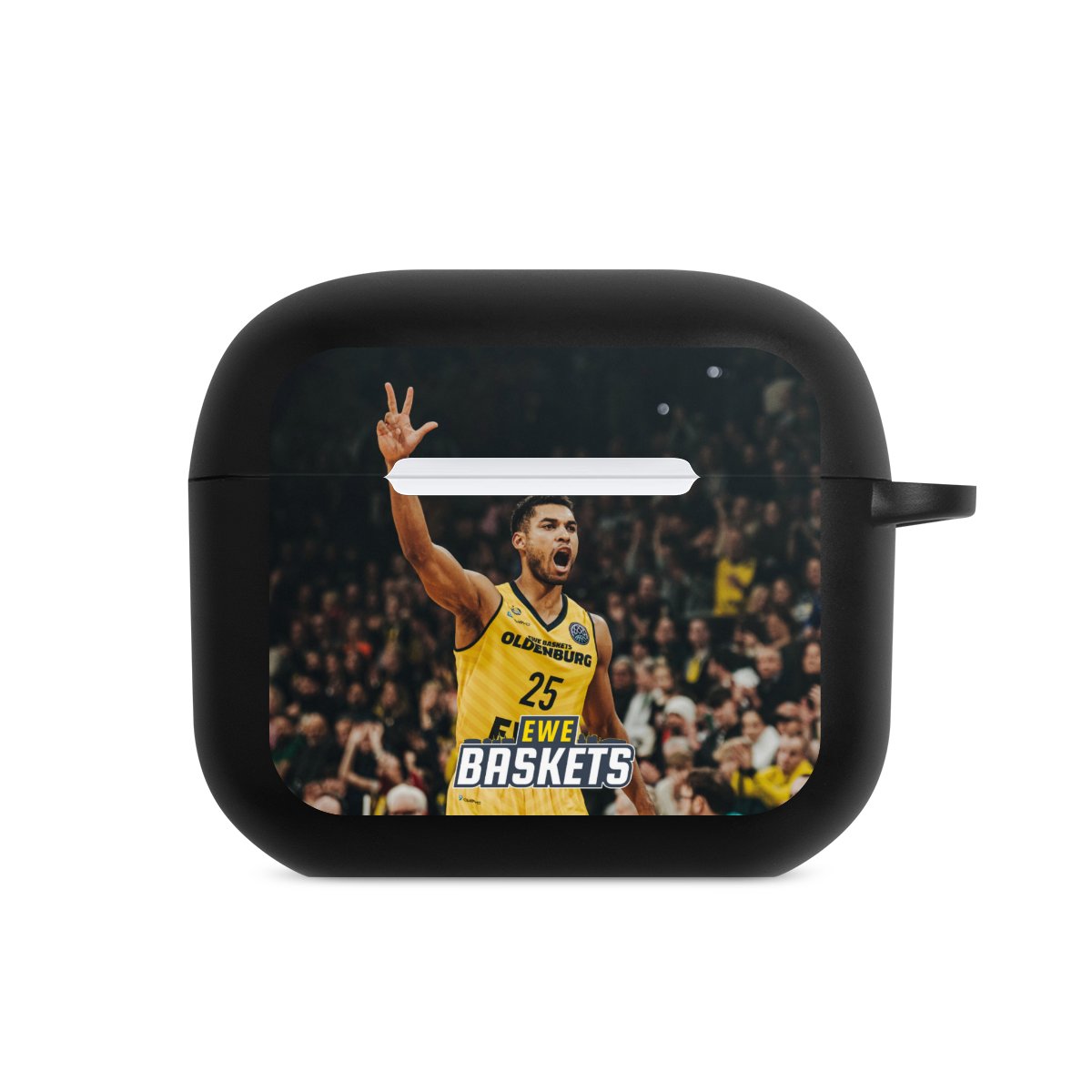 Das zweiteilige AirPods Case ermöglicht es Dir, Deine AirPods oder AirPods Pro sicher aufzubewahren und trotzdem immer griffbereit zu haben. Mit dem praktischen Karabinerhaken befestigst Du sie zum Beispiel ganz easy an Deiner Handykette oder einem Schlüsselbund. Wireless Charging bleibt natürlich weiterhin möglich. Die Hülle besteht aus hochwertigem TPU (thermoplastisches Polyurethan), einem langlebigen sowie bruchsicheren Material. Die Hülle ist in den Farben schwarz und weiß erhältlich. Und das Beste: Du kannst Dein AirPods Hülle selbst gestalten.