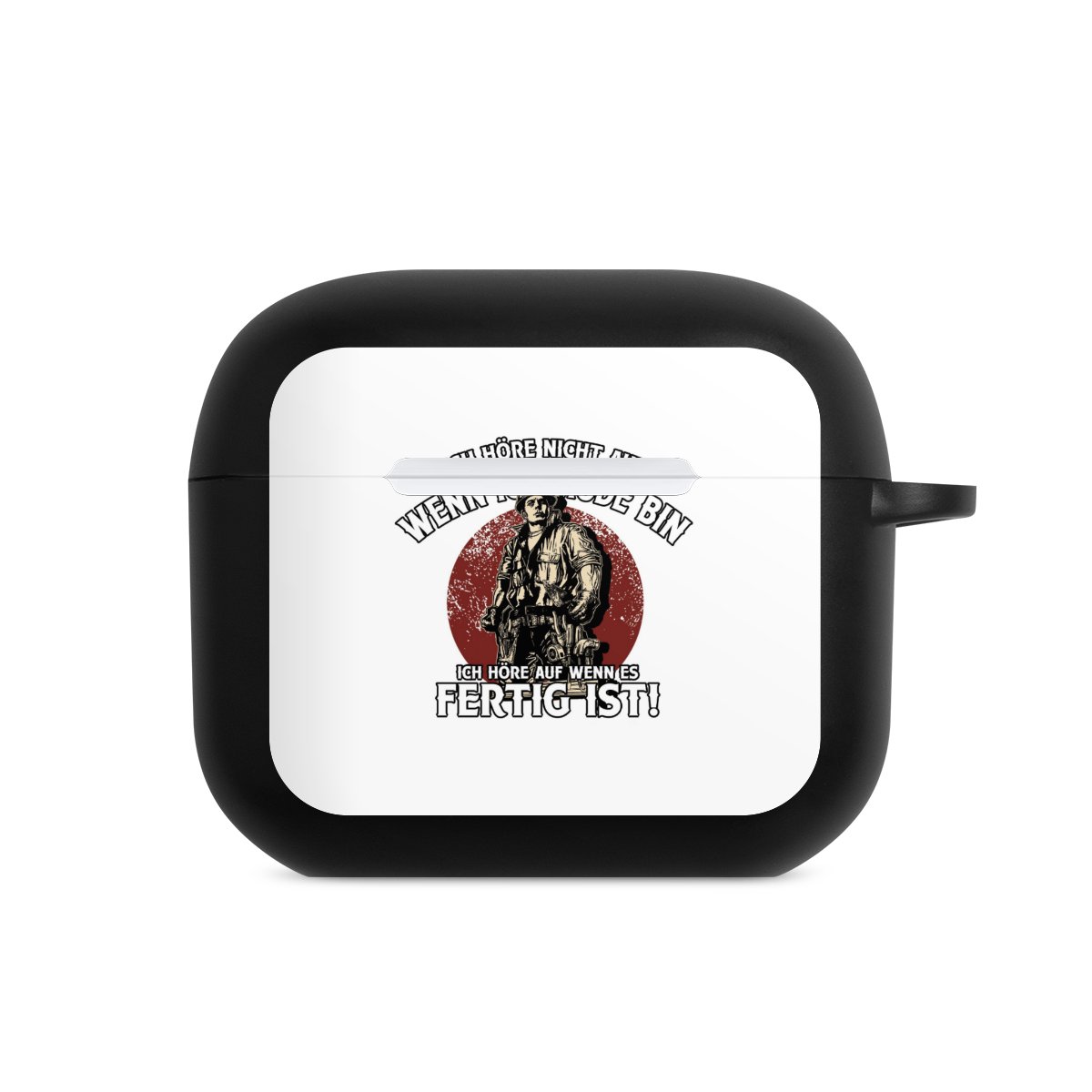 Das zweiteilige AirPods Case ermöglicht es Dir, Deine AirPods oder AirPods Pro sicher aufzubewahren und trotzdem immer griffbereit zu haben. Mit dem praktischen Karabinerhaken befestigst Du sie zum Beispiel ganz easy an Deiner Handykette oder einem Schlüsselbund. Wireless Charging bleibt natürlich weiterhin möglich. Die Hülle besteht aus hochwertigem TPU (thermoplastisches Polyurethan), einem langlebigen sowie bruchsicheren Material. Die Hülle ist in den Farben schwarz und weiß erhältlich. Und das Beste: Du kannst Dein AirPods Hülle selbst gestalten.