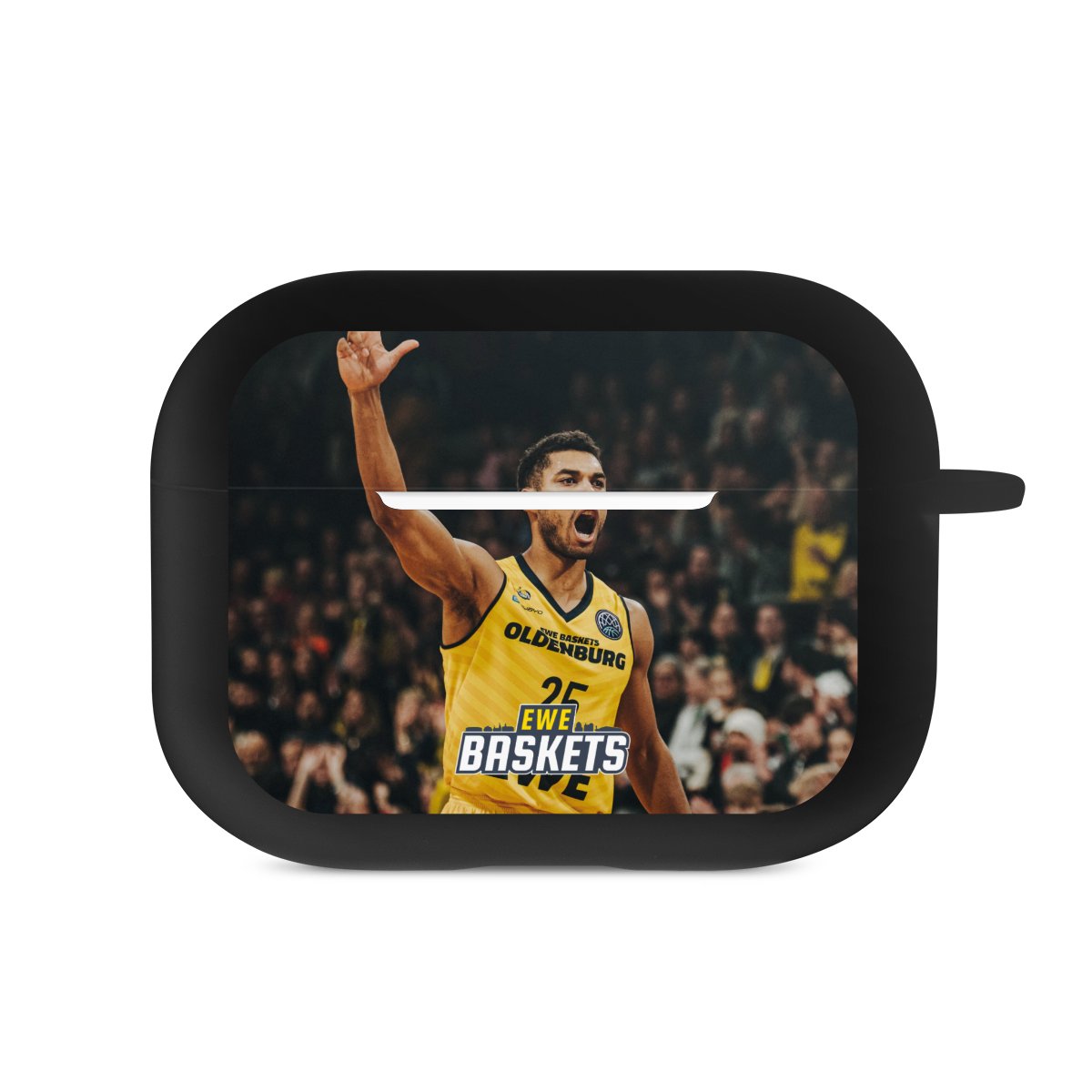 Das zweiteilige AirPods Case ermöglicht es Dir, Deine AirPods oder AirPods Pro sicher aufzubewahren und trotzdem immer griffbereit zu haben. Mit dem praktischen Karabinerhaken befestigst Du sie zum Beispiel ganz easy an Deiner Handykette oder einem Schlüsselbund. Wireless Charging bleibt natürlich weiterhin möglich. Die Hülle besteht aus hochwertigem TPU (thermoplastisches Polyurethan), einem langlebigen sowie bruchsicheren Material. Die Hülle ist in den Farben schwarz und weiß erhältlich. Und das Beste: Du kannst Dein AirPods Hülle selbst gestalten.