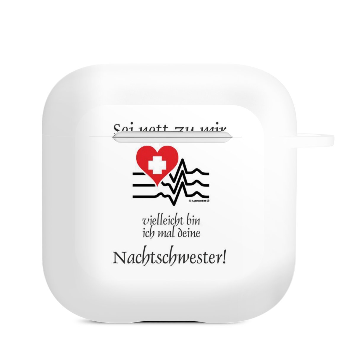 Das zweiteilige AirPods Case ermöglicht es Dir, Deine AirPods oder AirPods Pro sicher aufzubewahren und trotzdem immer griffbereit zu haben. Mit dem praktischen Karabinerhaken befestigst Du sie zum Beispiel ganz easy an Deiner Handykette oder einem Schlüsselbund. Wireless Charging bleibt natürlich weiterhin möglich. Das Case besteht aus hochwertigem TPU (thermoplastisches Polyurethan), einem langlebigen sowie bruchsicheren Material. Die Hülle ist in den Farben schwarz und weiß erhältlich. Und das Beste: Du kannst Dein AirPods Case selbst gestalten.