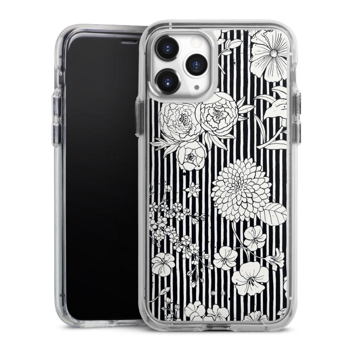 Blumen und Streifen Schwarz und Weiß