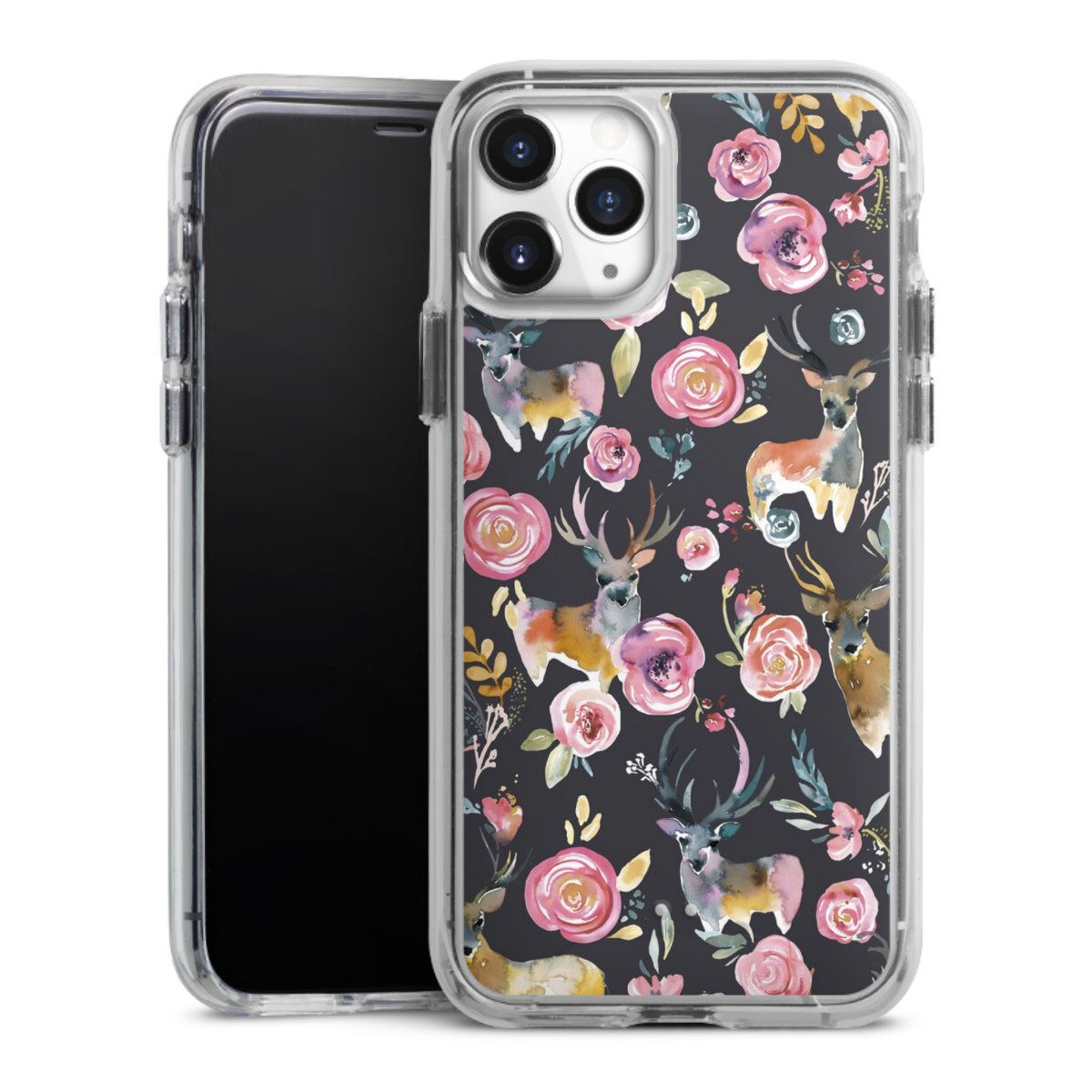 Hirsche und Blumen Anthrazit