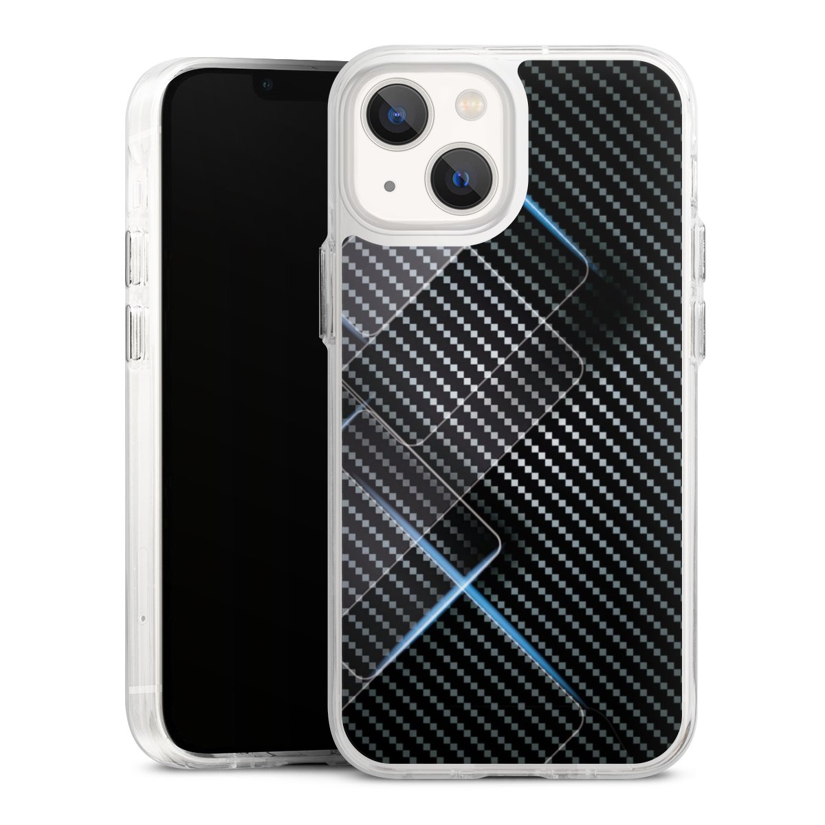Blaue Linien auf Karbon