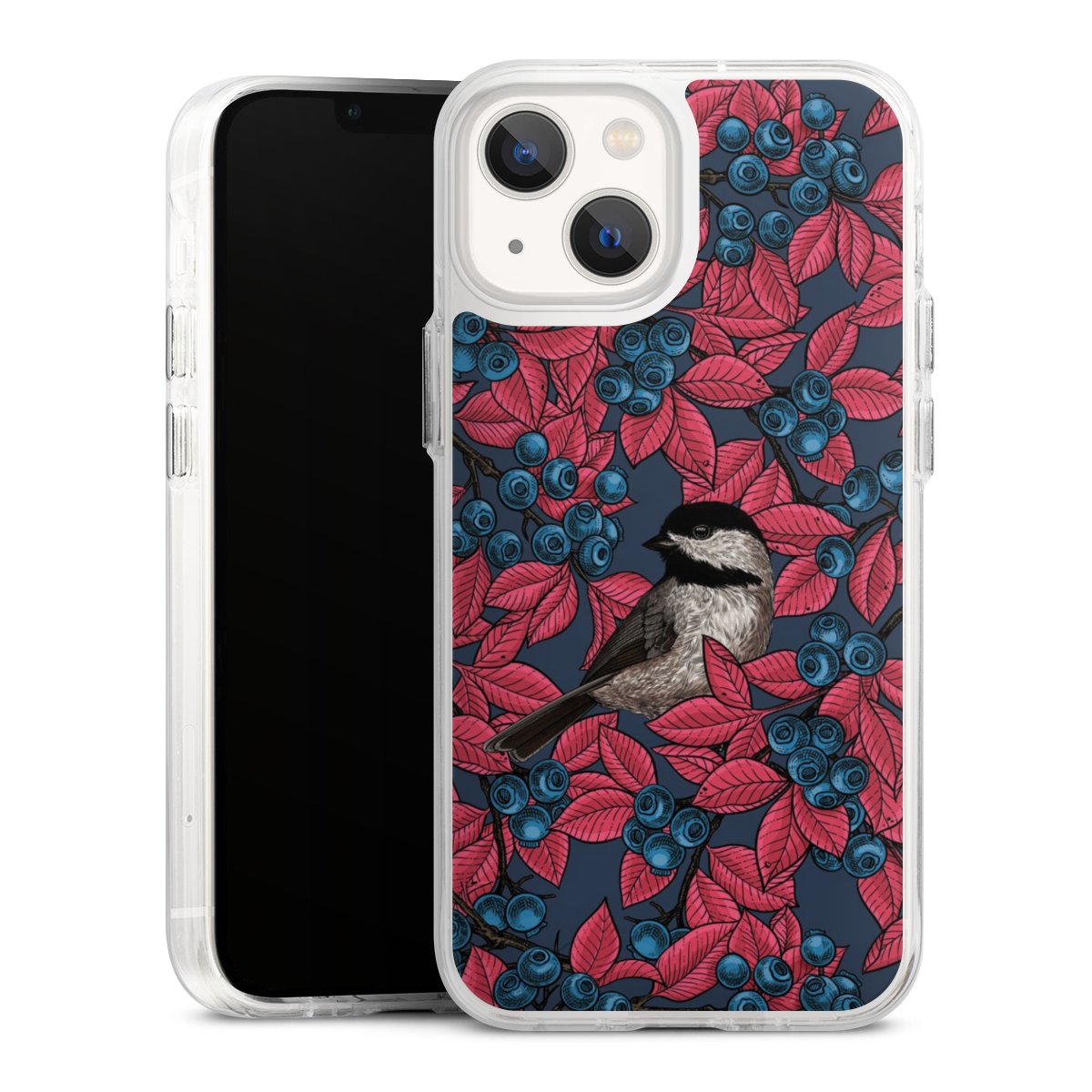 Blaubeeren und Vögel auf Navy
