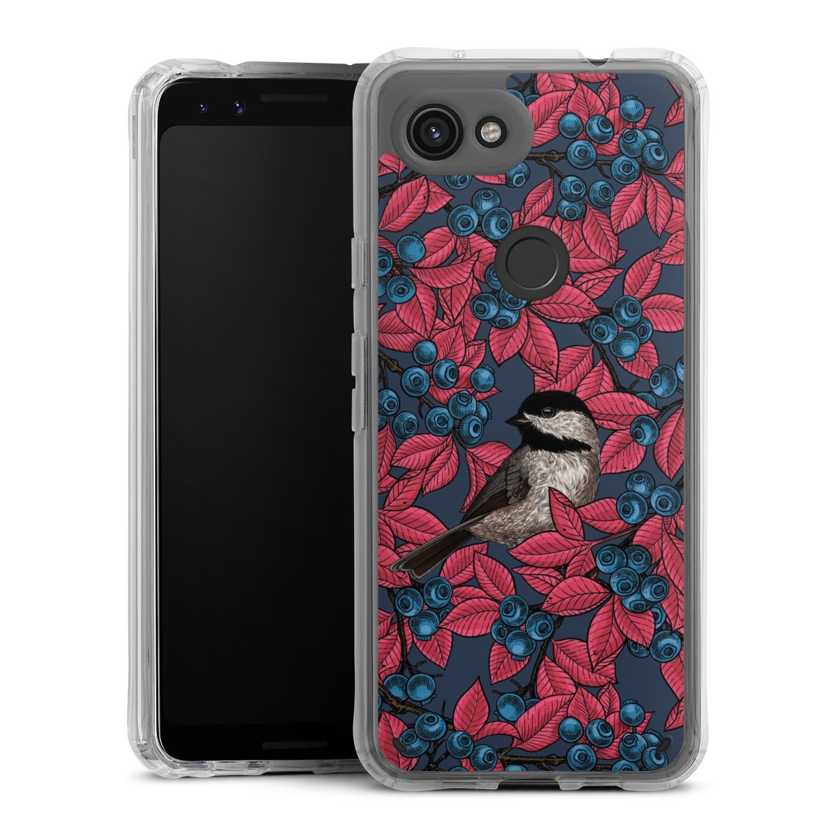 Blaubeeren und Vögel auf Navy