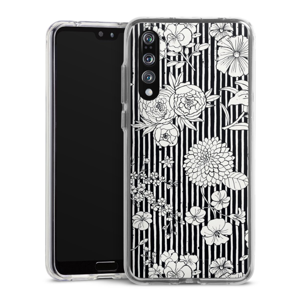 Blumen und Streifen Schwarz und Weiß